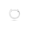 The Small Diamond Hoop Single Earring in 14k white gold features a 0.03 ct brilliant-cut diamond set in a polished 9.5 × 1.5 mm huggie. Sold individually, this hypoallergenic hoop offers subtle sparkle and timeless elegance — perfect for layering or wearing solo, refined by Clemance.